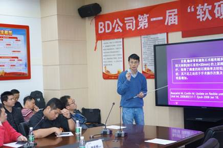 徐桂彬主任以“输尿管狭窄的腔内治疗”做了主题讲座。将我院十几年来开展输尿管狭窄的腔内治疗的临床经验进行归纳总结。详细地从手术适应症、规范化操作、手术技巧、并发症的防范及经典病例等进行阐述。徐主任同时介绍了近年来出现的可覆膜支架,这种支架在治疗移植肾输尿管狭窄、输尿管阴道瘘、肠代膀胱输尿管吻合口狭窄等一批疑难病例均取得良好的效果。