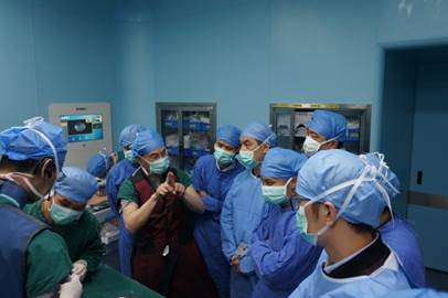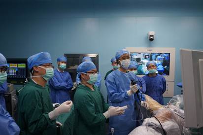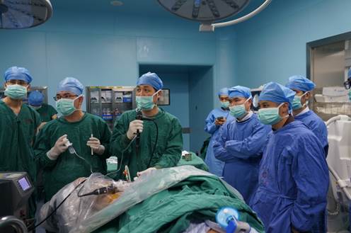 △上图为李天主任为患者行输尿管软镜碎石取石术,并与各地学者积极讨论。