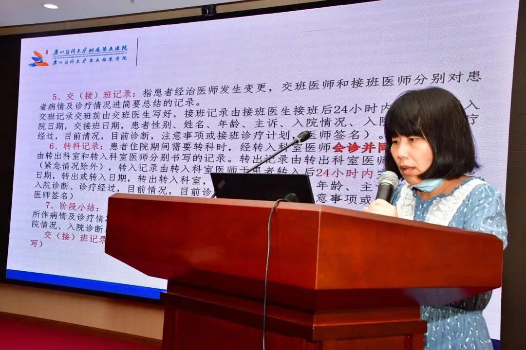 病案室陈雪竹副主任给学员们讲授了病历书写规范的内容,在陈主任的叙述中,学员们不仅对病历的种类、病历书写的流程和规范等内容有了更清晰的了解,也树立了注重病历书写规范的重要意识,为学员们在岗位上履行好病历书写的职责打下坚实基础。