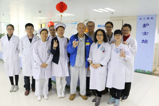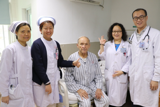 日前,一位担任过肯尼迪总统保镖的82岁美国退役海军来到广医五院。这位美国老人名叫杰克,因为双下肢水肿,不能平卧伴咳嗽一月余。在自行到药店买药服用无缓解后,在朋友介绍下来广医五院就诊。心内科丁月霞主任对杰克进行了仔细地询问和检查,最后诊断为“心肌梗死、心力衰竭”。经住院及门诊随诊治疗,杰克双下肢水肿逐渐消退,咳嗽消失,也能平卧了。住院4天包括进行了DSA检查(冠状动脉造影),总共费用不到一万元。而在美国,单单一项DSA检查费用就要一万美金。杰克看着账单直说着“I can’t believe this。出院一个月后,杰克居然到东南亚游玩了10天,期间他骑着单车、游着泳,自我感觉状态棒极了。