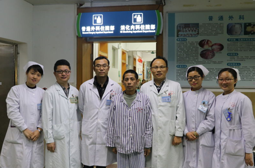 2月23日,由吕会增主任及张帆副主任率领的手术团队,对患者进行剖腹探查,术中探查发现,手术风险及难度极大。在麻醉科和输血科的配合下,经过12小时艰苦而紧张有序的努力,成功地为该患者进行了巨大胰腺肿瘤的根治性切除手术,至深夜十点才结束手术,患者顺利安返病房。术后,在普外科护理团队精心护理及治疗下,患者恢复非常顺利,未发生胰漏、胆漏、肠漏、出血感染、糖尿病及切口感染等并发症发生,9天开始可以吃流质食物,不到3周即顺利康复出院。术后2个月患者自行到院复查,食欲、睡眠、大小便均无异常,已正常工作1月余。