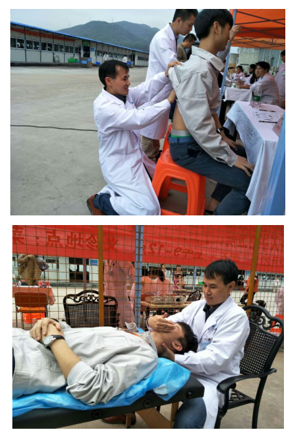 在增城菜鸟物流园,科室与医院神经内科、口腔科、眼科、泌尿外科、骨科、皮肤科等临床科室强强联手,为物流园员工的健康保驾护航。针对物流园员工的工作性质,科室罗庆禄教授与青年骨干一起,为员工们做脊柱徒手检查,并“私人订制”姿势矫正的方法,义诊服务至暖至心。
