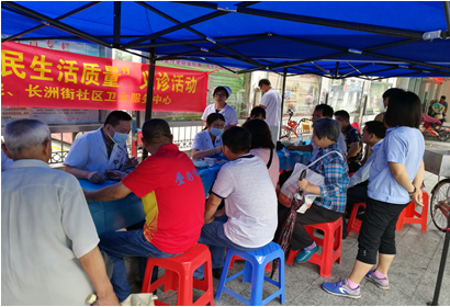 原来这里正进行着广医五院肿瘤科与长洲岛街道办、黄埔造船厂职工医院、深井社区卫生站联合开展的社区义务诊疗活动。活动现场提供测血压、血糖、肿瘤防治咨询、肿瘤血清标志物免费检测、中医诊疗等服务,由广医五院肿瘤科余桂芳副主任医师、李绍东副主任医师、夏媛媛主治医师联合黄埔造船厂职工医院内科郭娟主任等专家共同坐诊,为群众提供家门口的专业服务。居民对这种便利的活动频频点赞,希望以后能开展更多类似的活动。