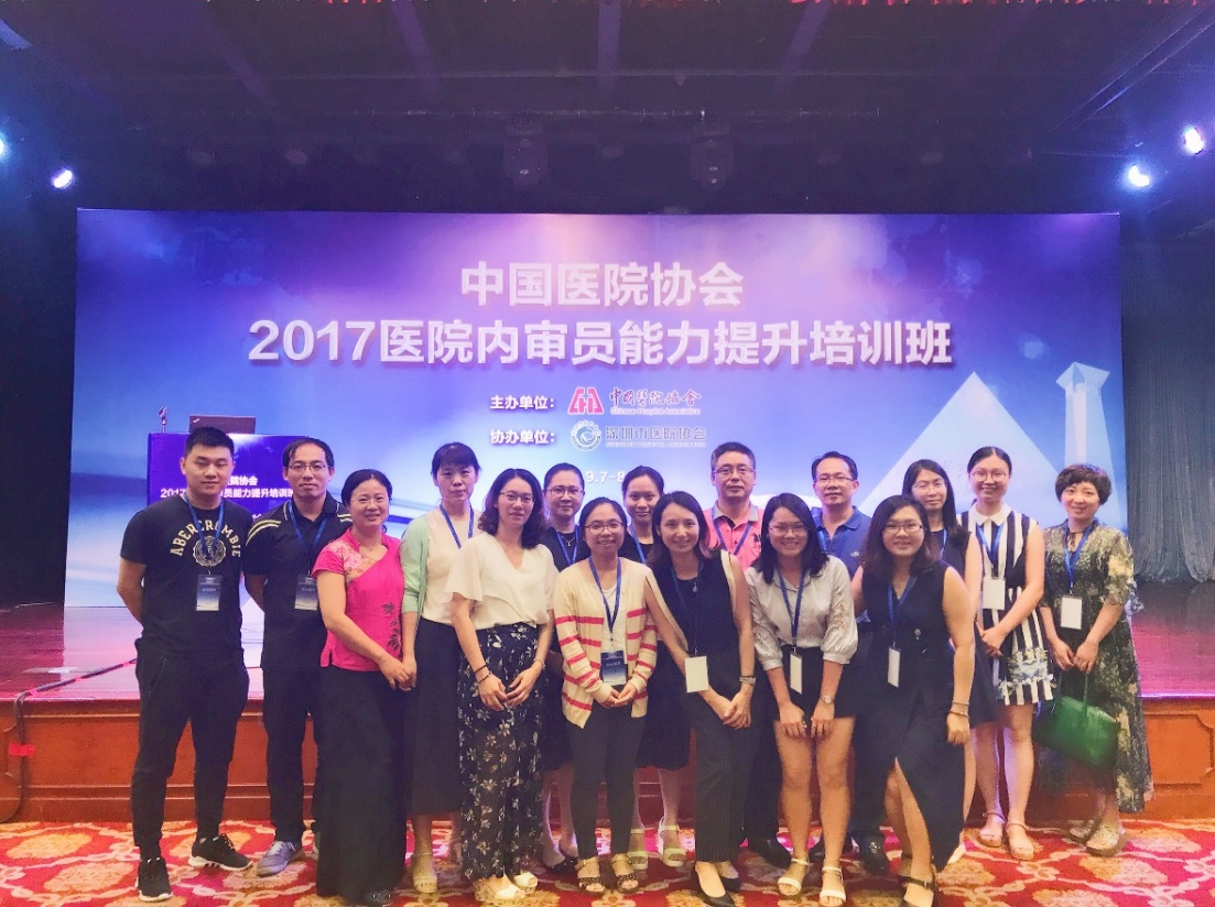 2017年9月为建立我院内审工作管理体系,不断完善医院质量安全管理长效机制,搭建医院内审工作平台,推进医院质量安全持续改进。在我院党委书记周如建同志的带领下,三甲办组织我院职能部门、重点临床医技科室的负责人和业务骨干一行16人参加由中国医院协会主办、深圳市医院协会协办的2017年医院内审员能力提升培训班。