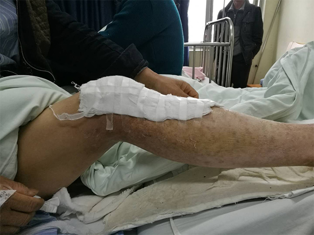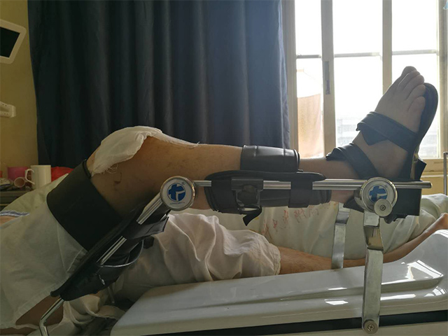 广医五院吕浩然主任及其医生团队为谭伯做了右胫骨平台粉碎性骨折切开复位内固定术和内侧副韧带断裂修补术及石膏外固定术,手术十分成功。
