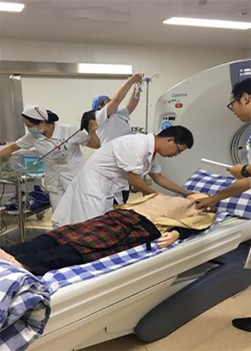 根据演练方案正式进行演练,将科室人员分为三组,演练过程为造影剂注射过程中发现病人不适,迅速进入检查室查看病人情况,建立静脉通道。呼叫影像科值班医生和急诊科医生寻求支援,医生达到现场立即进行救援,病人情况好转转移至急诊科进一步治疗。随后第二组第三组进行演练。