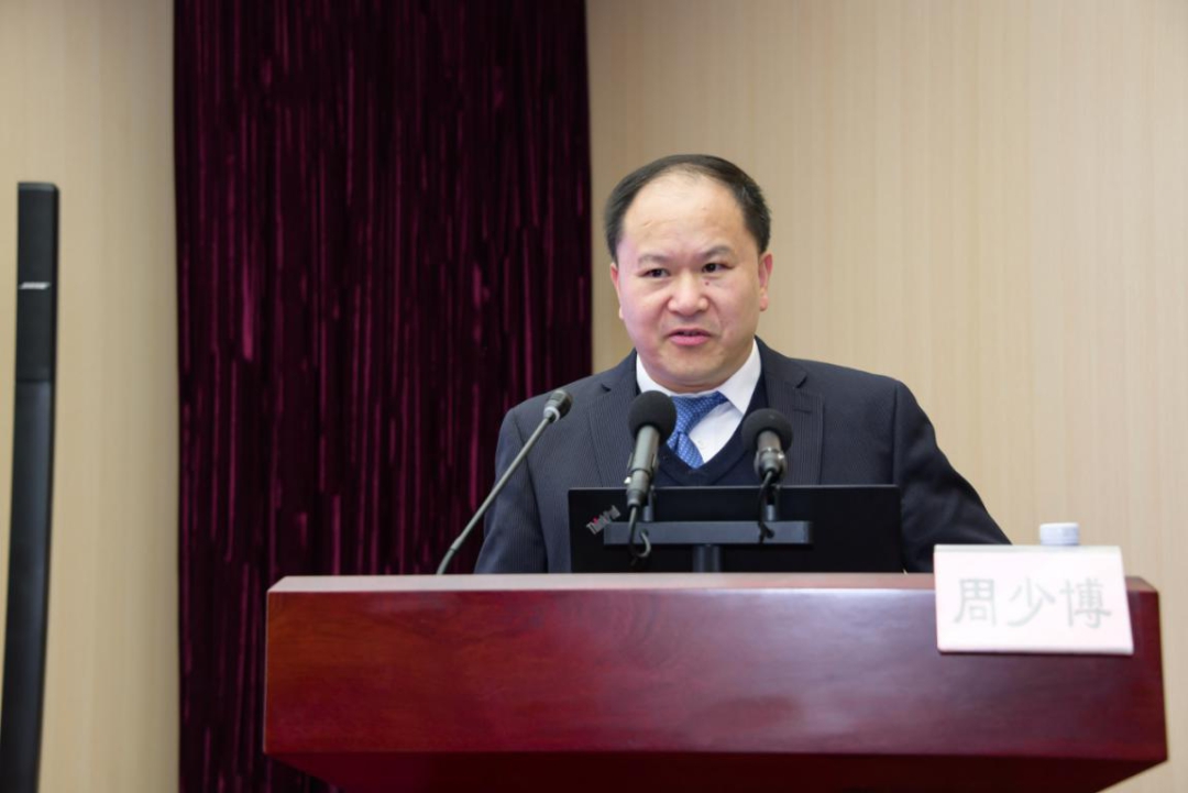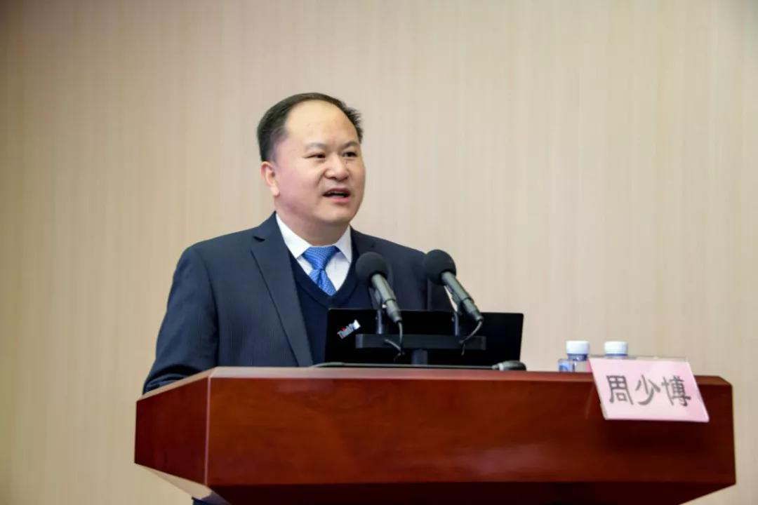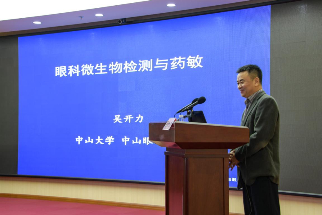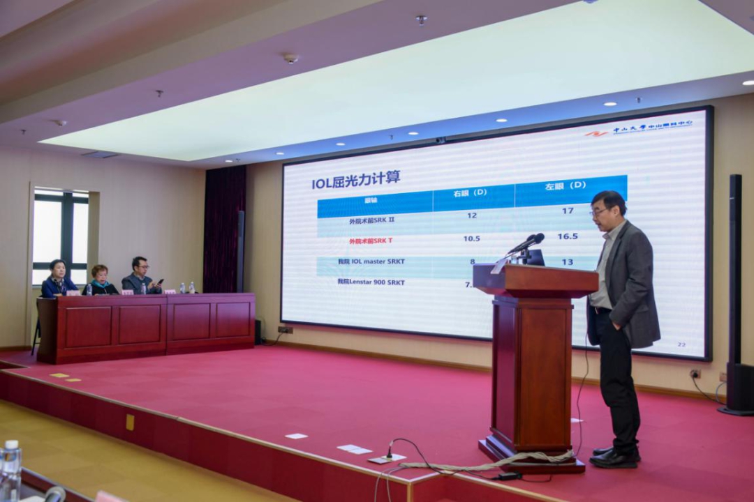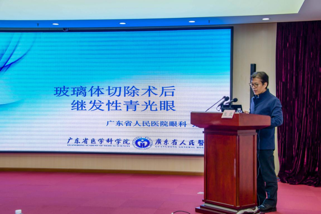 ▲广医五院眼科主任、大会主席周少博教授主持会议