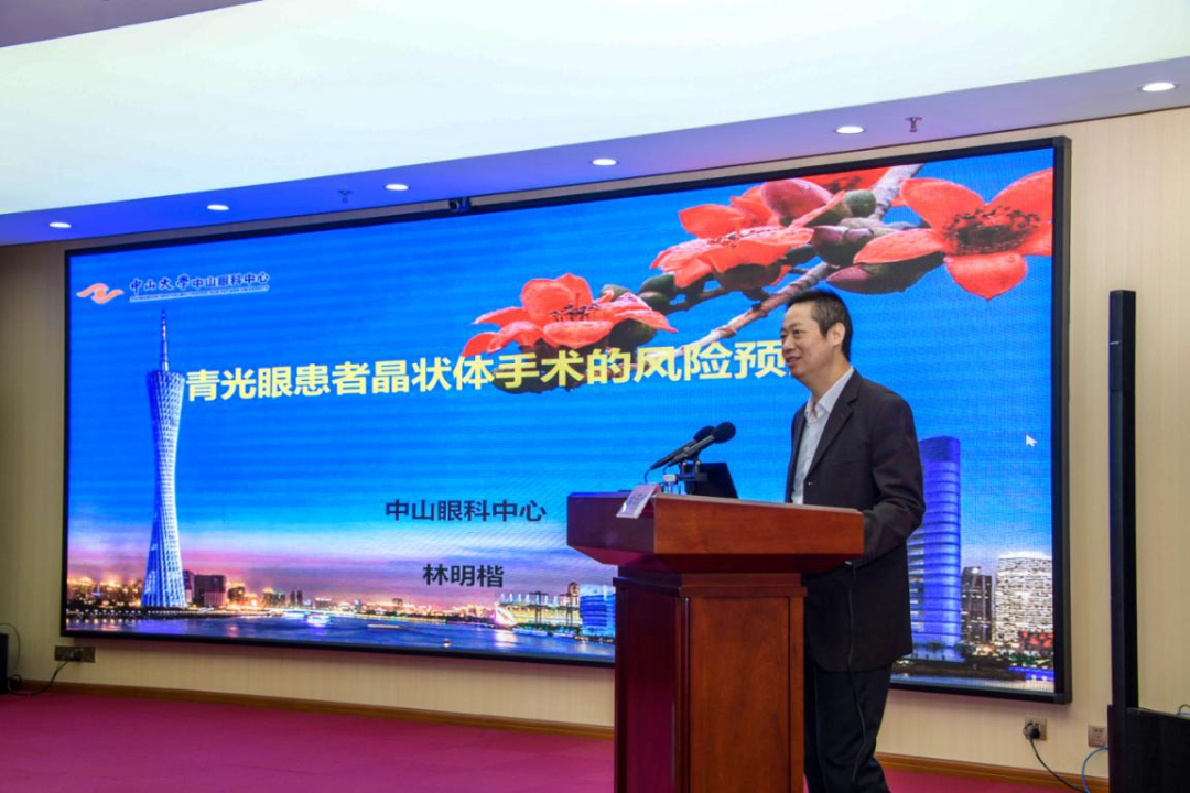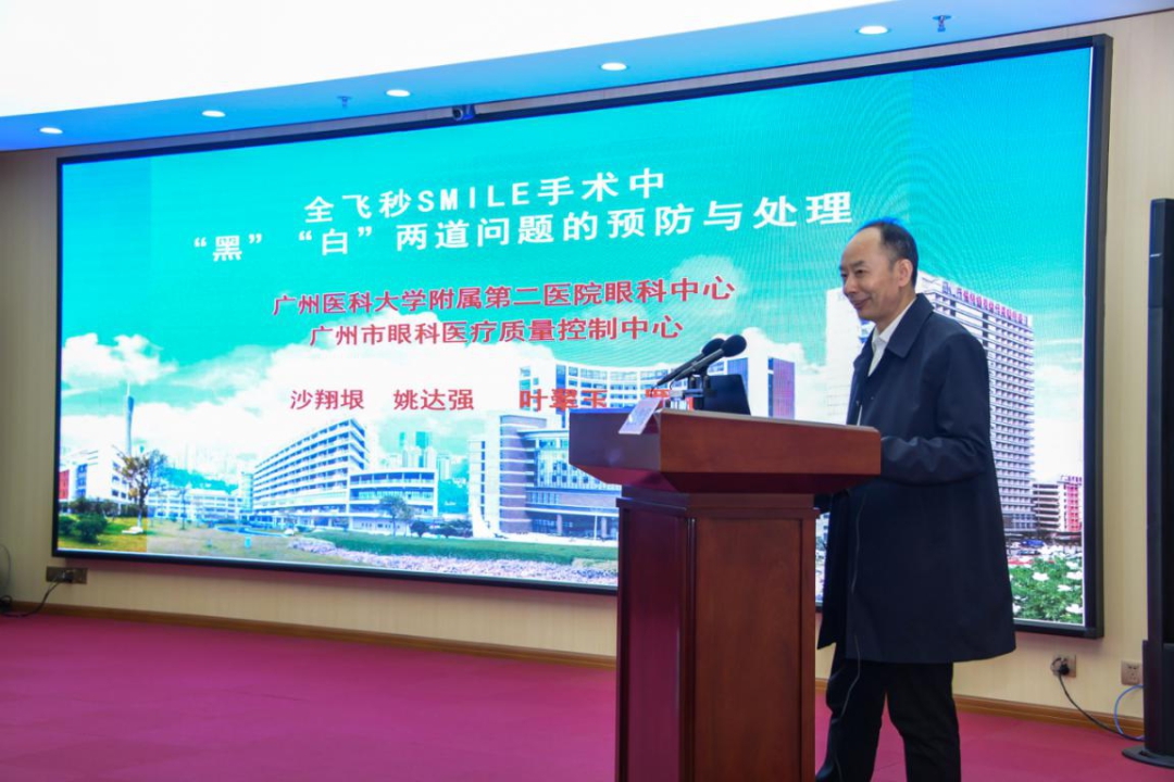▲广东省眼健康协会白内障屈光专业委员会主委张志辉教授致辞