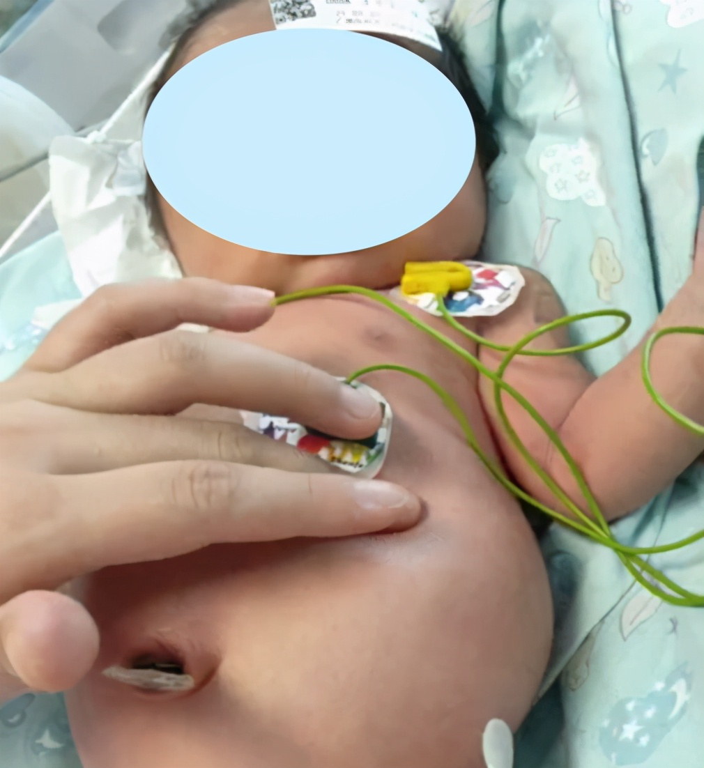 宝宝还在妈妈肚子里时,产检B超就提示宝宝有肾积水的问题。胎儿肾积水是一种胎儿形态学异常,为此2020年12月29日,只有37+1周的宝宝就因“胎儿发育异常”剖腹产出生,随后因为发绀和轻度呼吸困难留院治疗。出生后的第3天,病情未有好转的她被转院至我院新生儿科继续治疗。