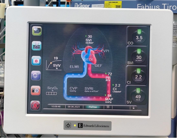 Vigileo血流动力学监测,是通过连续分析外周动脉的波形特征连续性监测心输出量、心排指数、每搏输出量、每搏输出量变异度等参数来反映血容量状态的一种监测方法。该方法操作简便使用安全并且 不需要通过其他方法来校准。容量导向性血流动力学治疗方案通过及时反应病人心脏血流动力学动态变化,更好的指导患者的液体治疗。