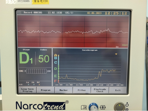 围术期需要维持合适的镇静水平满足手术要求,麻醉深度过浅可能导致术中知晓的发生,而麻醉过深可能导致术后认知功能障碍、术后谵妄等术后并发症发生。麻醉脑电意识深度监测系统(Narcotrend),该技术彻底改变了过去“毛估估”的经验麻醉,进阶到精确麻醉领域,通过监测脑电频谱,实时反映患者所处麻醉深度,为个体化麻醉用药提供了量化依据。麻醉医师可以精确调整麻醉药物的用量至最适水平,既能保证患者舒适安全,又能最大程度降低麻醉并发症和麻醉意外发生率。确保心血管手术、术中唤醒、脊髓神经电生理监测等特殊手术的开展。