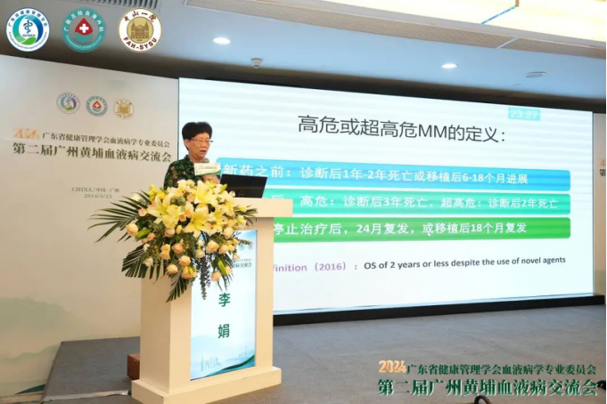 中山大学附属第一医院李娟教授在报告中介绍了高危多发性骨髓瘤的异质性研究,从多个维度探讨了高危多发性骨髓瘤的遗传学特征、治疗方案及预后评估,为临床实践提供了理论支持。她的演讲内容丰富,为与会者提供了新的研究视角和思路。