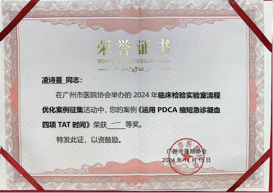 通过引入PDCA循环管理,以及5S管理整顿、ISO15189管理学习和实施等,科室不仅有效缩短了急诊凝血四项的TAT,还全面优化了检测流程,提升了团队的专业素质和技能。