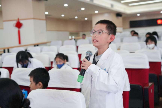 随后,余桂芳主任带来了一场精彩的医学科普讲座——《疾病根源的背后》。余主任运用风趣幽默的语言,结合贴近生活的丰富案例,将深奥的疾病成因和预防知识讲解得浅显易懂,让孩子们在轻松愉快的氛围中,对医学产生了浓厚的兴趣,并有了初步而深刻的认识和理解。讲座过程中,孩子们积极互动,踊跃提问,展现出浓厚的学习热情。