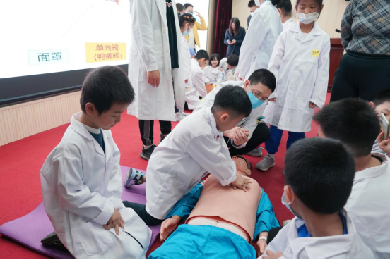 紧接着,刘飞兵老师为青少年们讲解了心肺复苏(CPR)的基础知识,并与护士们组织了模拟演练。孩子们在老师的指导下,认真学习急救技能,亲身体验了急救操作的全过程。通过实践,孩子们不仅增强了自我保护能力,还学会了如何在紧急情况下救助他人。
