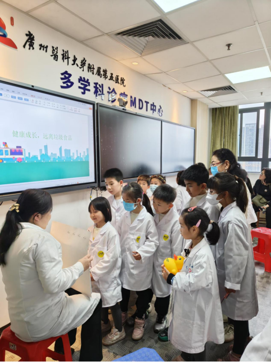 最后孩子们跟随冯惠平主任参观了营养科,认识了各种健康食物。通过生动有趣地讲解,孩子们明白了合理饮食的重要性。