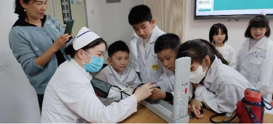 随后,孩子们在12楼会诊中心参与了健康游戏《模拟医生体验》。在老师们的指导下,孩子们穿上白大褂,扮演小医生,体验了看病、检查等环节,感受到了医生的责任和使命。