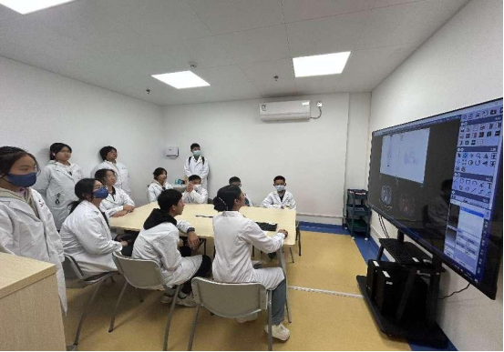 在医学影像科,欧阳中敏副主任技师带领孩子们参观了医学影像检查室,深入讲解了X光和CT检查技术的临床应用。例如,CT检查技术不仅能够用于颅脑外伤、急性脑出血等疾病的诊断,还能通过增强扫描来观察血管性、感染性及占位性病变。而X光检查则广泛应用于呼吸系统疾病,如肺结核、肺炎等的诊断,其快速无创的特点使其成为诊断和监测呼吸系统疾病的重要工具。孩子们对医学影像技术的作用有了清晰地了解,进一步拓宽了他们的医学视野。