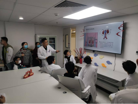王瑞鑫副主任医师为青少年们介绍了血透室的工作。他讲解了肾脏衰竭的根源以及人工肾的应用,让青少年们对肾脏疾病有了更深刻地认识。