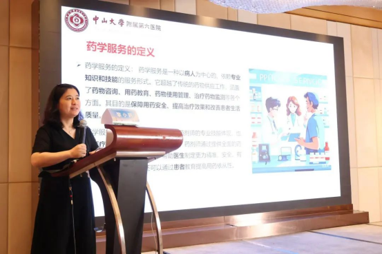 广医五院李咏梅主任分享了药学部在学科建设、公益服务及主要业绩方面的成果,展示“医教研管”多维融合助力药学发展的路径。