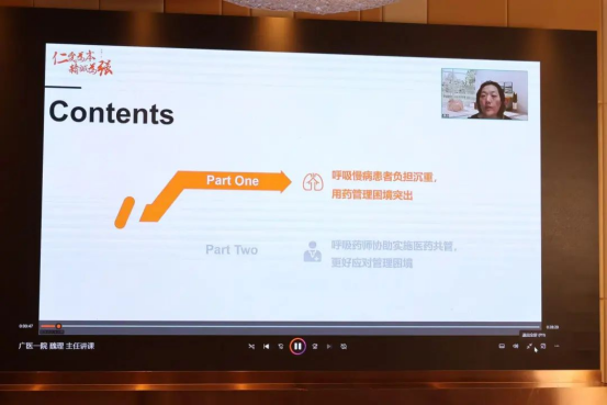 广州医科大学附属第一医院魏理主任介绍了呼吸慢病医药共管的模式,阐述了医师-药师-患者三方参与的医药模式在改善患者依从性、减少不良反应、节省医疗费用等方面的优势。