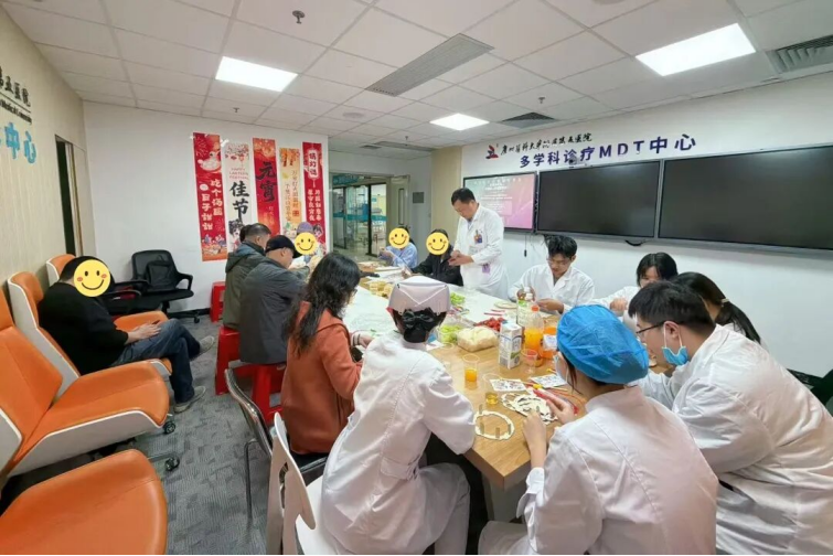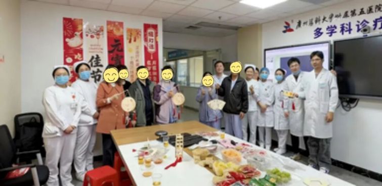 正月十五闹元宵,万家灯火庆团圆。然而,有这样一群人,因为治疗的需要,暂时无法回家与亲人相聚。为了让他们同样感受到节日的温暖与关怀,3月3日元宵节当天,广州医科大学附属第五医院肿瘤中心精心策划并举办了健康关怀活动,将健康科普、节日手工与暖心汤圆相结合,为在院患者及家属送上一份特别的节日祝福。