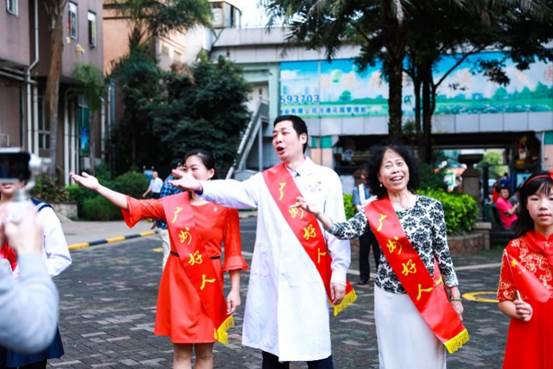 3月30日,国际医师节当天,广医五院派出了40多名党员志愿者到新时代文明实践站——怡港社区,开展“党员服务走基层活动”,给社区居民送去健康和温暖。