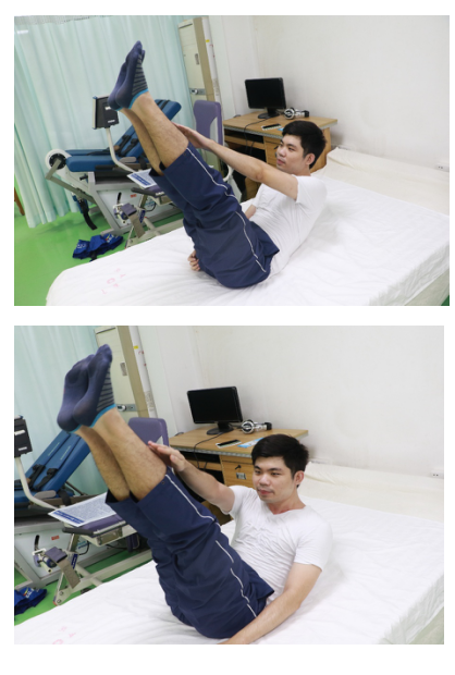 侧重锻炼侧腹部:平卧于地面,髋关节抬起约60-70度,膝关节伸直,左手尽量触碰右足踝外侧,反之亦然,双手交替快速进性,直至力竭为止。