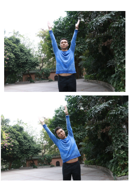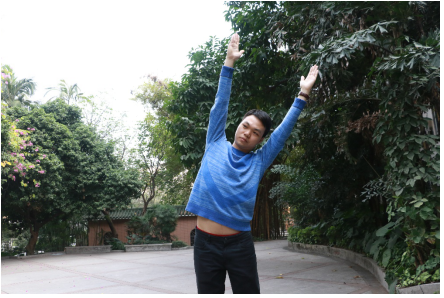 腰部放松动作:起身做摆髋的放松运动。侧分腿稍大于肩站立,两臂上举,收腹立腰。动作是第1、2拍时,髋部向左上方动2拍。第3、4拍时,向右上方摆髋2拍。左右摆髋动作反复4个8拍。运动的时候注意手尽量向上伸展,就像有人在上方拉你,伸长你的身体。摆髋时,两膝顶直,固定上身位置,以腰带动髋部运动。