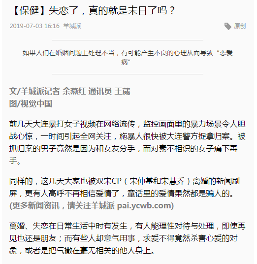 同样的,这几天大家也被双宋CP(宋仲基和宋慧乔)离婚的新闻刷屏,更有人高呼不再相信爱情了,童话里的爱情果然都是骗人的。(更多新闻资讯,请关注羊城派 pai.ycwb.com)