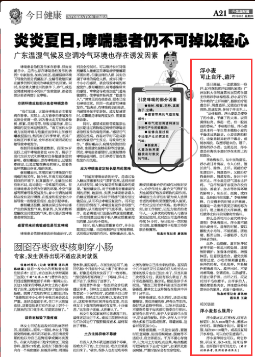 刊登于2019年8月8日 信息时报A21 今日健康版