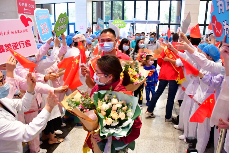 “8年的临床工作中,武汉的61天是我最刻骨铭心的经历。阔别医院和最爱的同事75天,回来的瞬间,看到大家热情的欢迎,我也忍不住热泪盈眶。完成任务平安归来,我最大的感受是我更爱我的国家、爱我的职业,以后要更加珍惜时间和我们所拥有的。”提到此次的援鄂经历,队员何欢感触颇深。