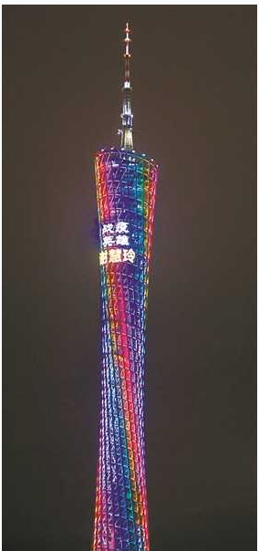 看到自己和队友们的名字,在广州的地标——广州塔上闪耀,心里无比兴奋,自豪!