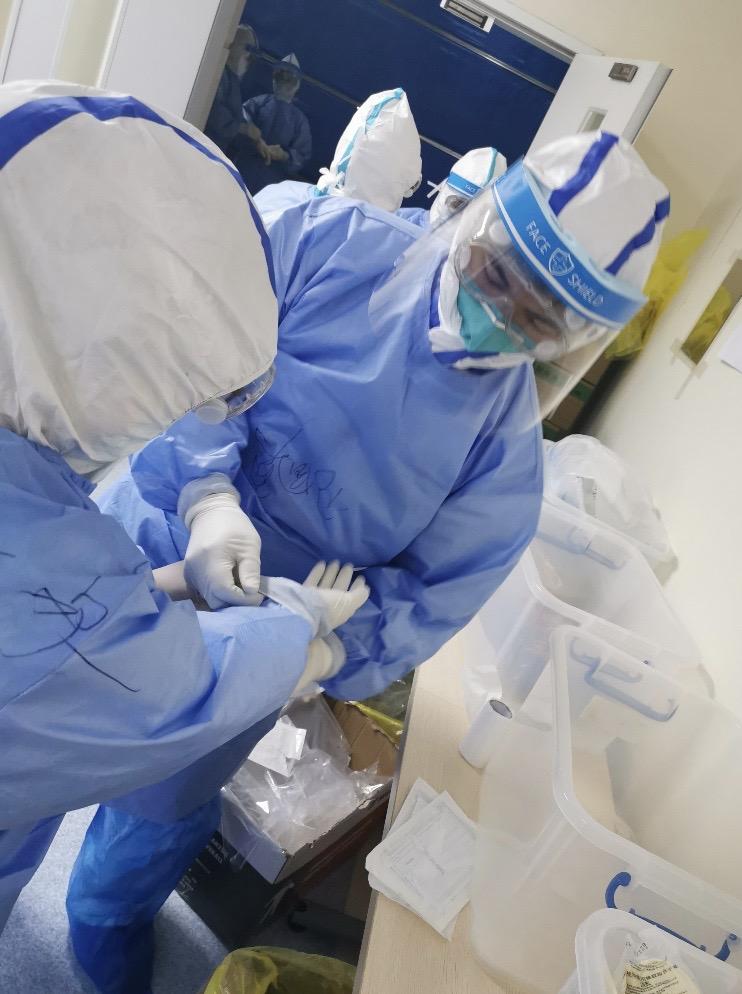 虽然工作流程与在广州差不多,但在全副武装防护服上完一套班下来,满身大汗,手脚发软,嘴巴发干。交班清洗完出来后,我终于喝上上班以来的第一口水,第一次觉得,能喝上水是多么幸福的事。