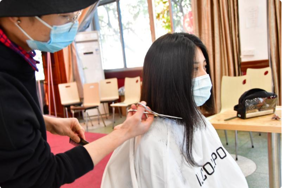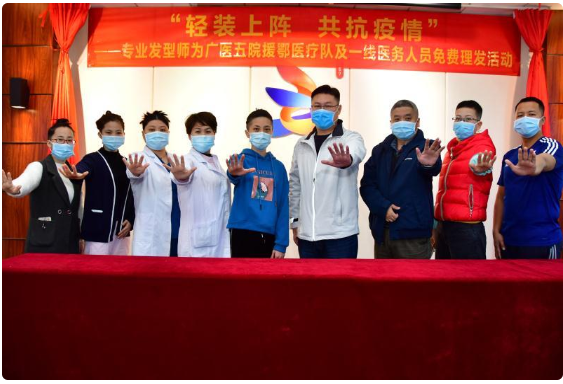 受疫情影响,市内很多理发店,都没有开门营业。为了完成医护人员简便出征的心愿,医院联系到 7 名专业发型师志愿者,主动到院为这些奋战在 " 抗疫 " 一线的医务人员免费剪发。