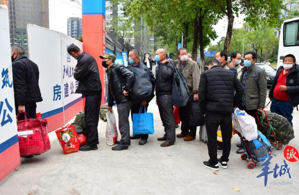 在广州全力部署复工复产之际,3月2日下午1点30分,31名在河南驻马店的工人在广州医科大学附属第五医院(以下称“广医五院”)帮助下顺利返回广州,迅速返回岗位——黄埔区一重点项目复工。