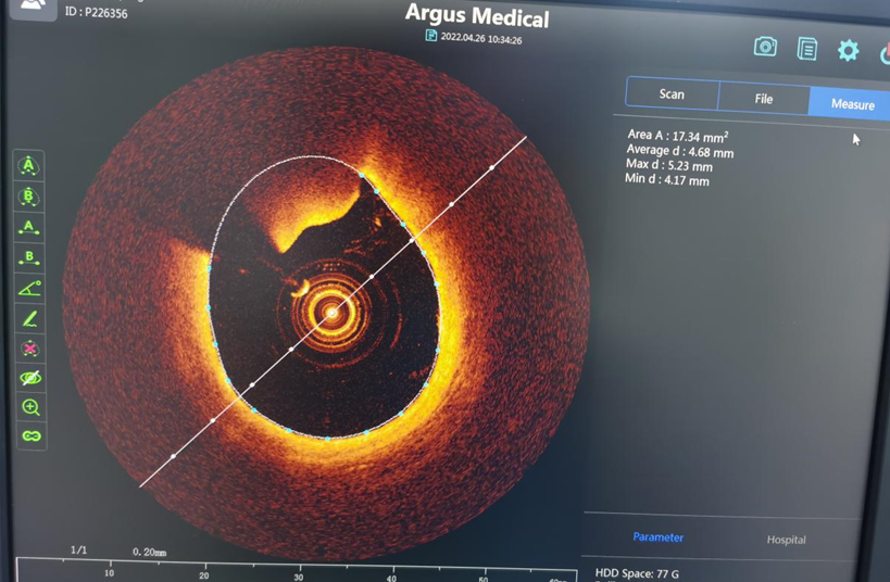 此次通过OCT技术的实施,精准监测血管直径,为林叔避免非必要支架植入治疗。