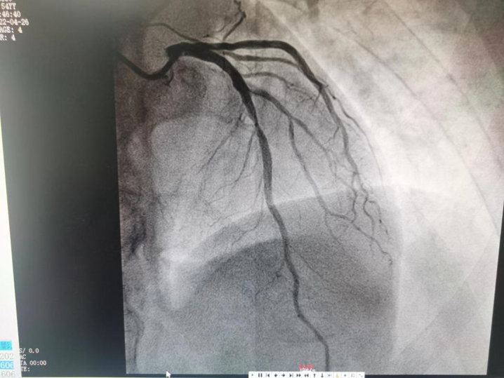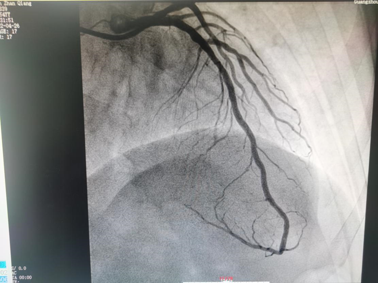 患者林叔已经反复胸闷、胸痛5天了,随着症状逐渐加重,考虑为急性冠脉综合症。术中造影结果显示,林叔前降支近中段存在明显狭窄,LAD弥漫斑块浸润,近段狭窄20%,近中段局限偏心狭窄90%,需要进行介入手术治疗。