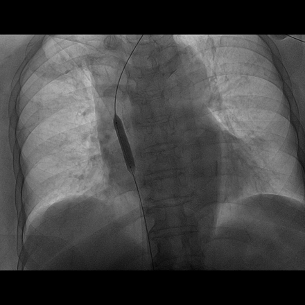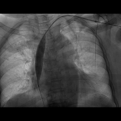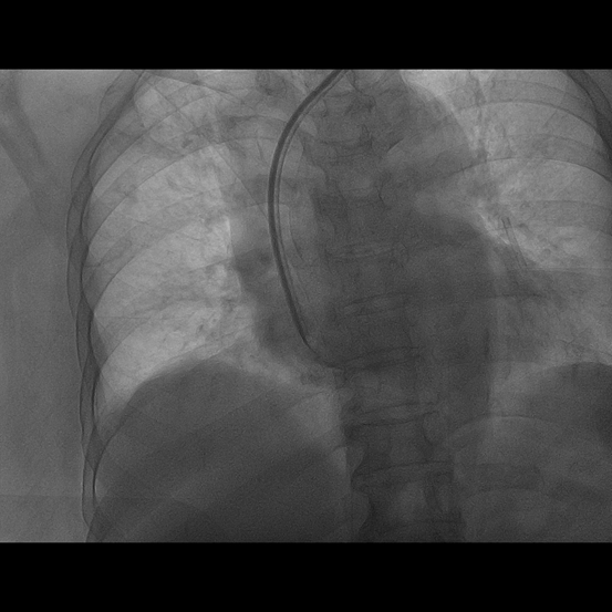 72岁钟阿姨,患尿毒症3年多,长期在我院维持性血液透析治疗,有糖尿病基础疾病,血管条件差,无法行动静脉内瘘手术建立血管通路。钟阿姨曾于2012年底在我院植入右侧颈内静脉半永久透析管,1年后因管路血流不通畅,予以行左侧颈内静脉半永久透析导管术,继续规律血液透析,近期因管路血流量不佳入我院住院治疗。入院后查CTV提示左侧颈内静脉纤细,上腔静脉怀疑血栓,右侧颈内静脉狭窄。由于考虑手术风险高,手术难度较大,肾内科严跃红主任医师邀请广州市第一人民医院放射介入科陈国东副主任医师,联合我院心血管介入科邓天明副主任医师和DSA室医护人员,术前全面评估,术中精细操作,血管造影显示:左侧锁骨下静脉、头臂静脉、上腔静脉上中段狭窄,上腔静脉下段完全闭塞,遂用三个球囊对狭窄闭塞的静脉血管进行逐级扩张成形后,上腔静脉血管复通,DSA引导下辅助半永久透析导管植入,手术成功。