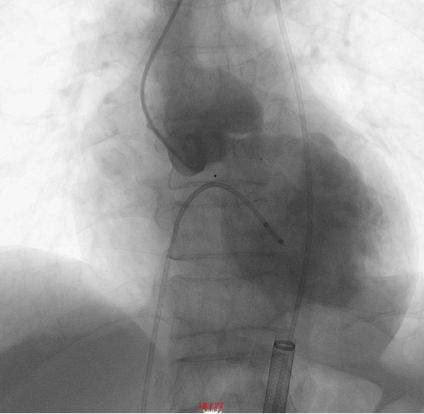 ▲ 主动脉根部造影:瓣叶脱垂,可见主动脉瓣重度返流