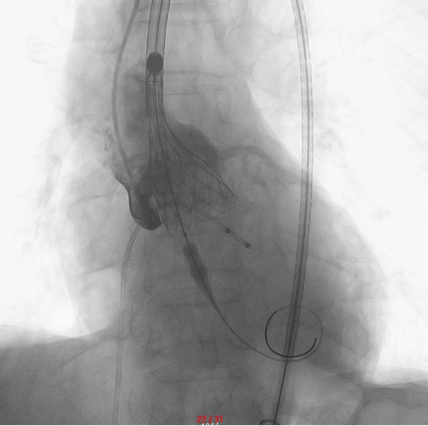 ▲ 瓣膜定位释放:精确定位,造影示位置、形态良好