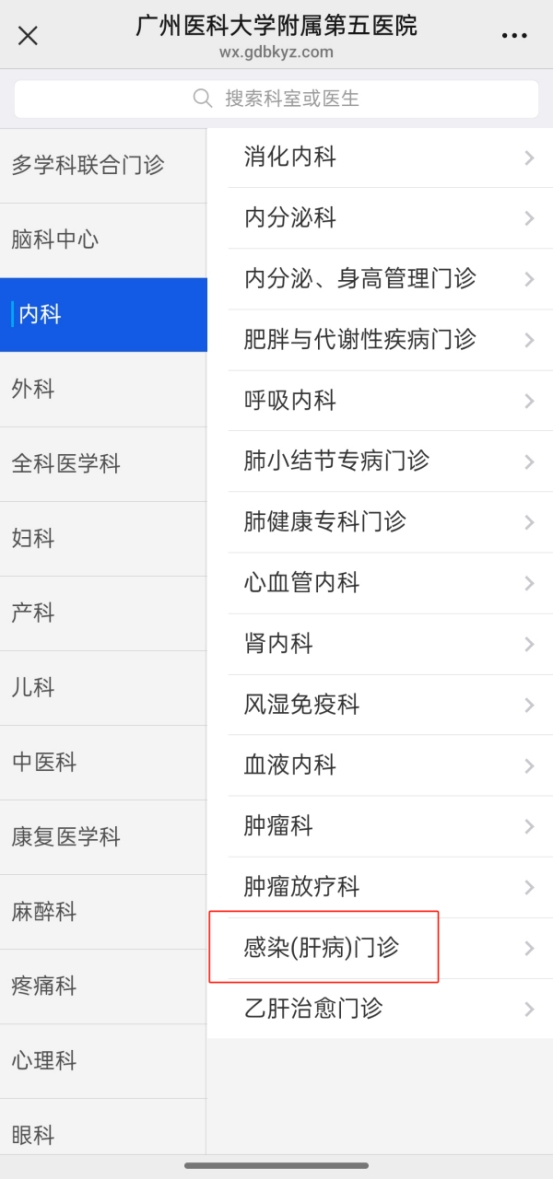 预防方式:”广医五院”公众号-预防挂号-内科-感染(肝病)门诊-点击进去可以选择欧阳石主任医师(周一、周四上午)、陈阳述主任医师(周二、周六全天)、刘崇文主治医师(周一、周四下午)、孙偲主治医师(周三下午、周五上午)、袁小莉主治医师(周三上午、周五下午)、彭婷婷主治医师(周二下午)。周六、周日全天出诊。
