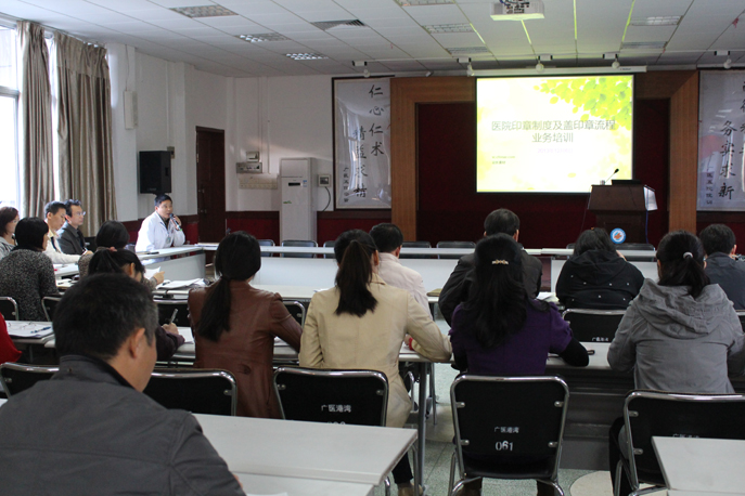 2013年12月8日下午2:30,我院医院印章使用管理培训及网站建设管理方案讨论会在会议厅举办,党委书记周如建、党委副书记陈益民、各职能部门负责人及众科员参加了会议,会议由办公室主任班莉主持。