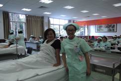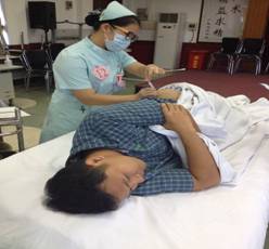 上图为参赛选手正在专心致志地操作(床上的病人均由医生、护士扮演)