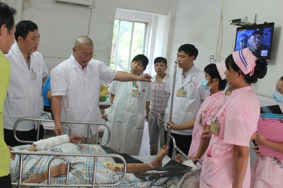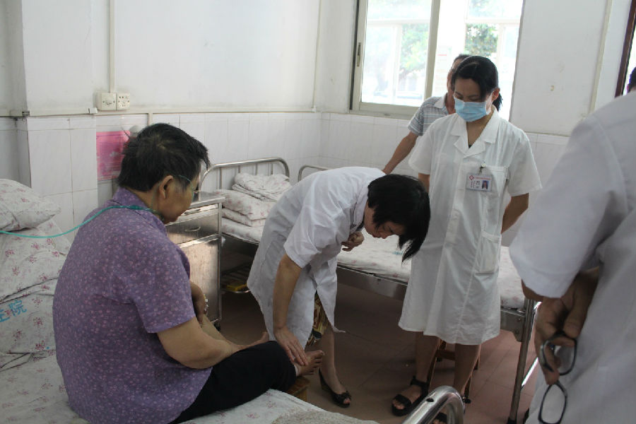 为了尽早帮助基层群众,揭牌仪式结束之后,我院肾内科、内分泌科主任严跃红、康复医学科主任陈建平随即分别进行了对口帮扶项目确立后的第一次查房,对病人细心检查,对卫生院的医护人员耐心讲解和指导,无论是病人还是医护人员都对这样的帮扶活动表示热烈欢迎,一位家属鼓着掌扬着灿烂的笑脸说:“太好了,不用旅途奔波就可以有专家来看病,真是病人的福音!”听到这样的话语,是对所有参加对口帮扶项目的工作人员莫大的鼓舞!