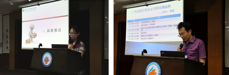 对于本次培训,钟科长作了一番精心准备,考虑到公文范畴大,很多知识短时间难以消化,他精心挑选了一些容易掌握的公文写作技巧供大家学习。钟科长向我们讲授了多年积累的丰富的公文写作实战经验,围绕“基础知识”、“格式标准”、“常用写作”和“常见问题分析”四个方面进行深入浅出的理论指导,并且演示具体错误案例,使在场人员能清晰认识公文写作的误区。钟科长表示,提高公文写作能力主要在于勤写勤练,培养良好的写作习惯。