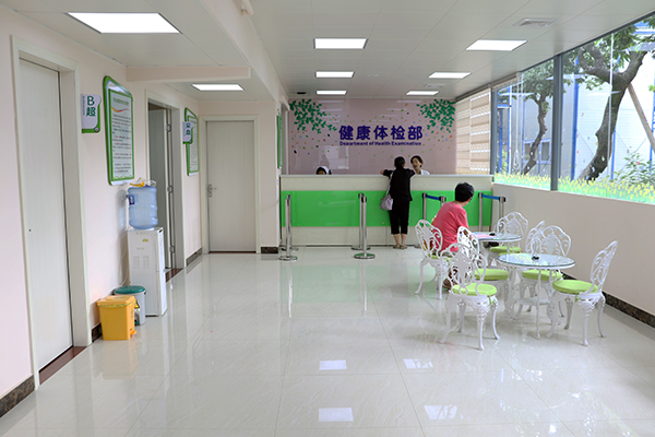 进入体检部大门,是宽敞明亮的候检大厅,受检者在主检医师和护士的指导下,可安心地坐下填写自已的个 人资料、挑选合适自已的体检项目,候检厅内配置饮水机、报刊等设施,为候检者提供小憩的人性化服务。通过这次改造,体检部一楼新增四间诊室,大部分体检项目可在一楼完成,有效优化整个体检流程,节约体检时间。这次改造还增设了体检部专属的小花园,体检者可在这鸟语花香的小花园里等候体检、吃早餐等。改造后的体检部,每个角落都经过了精心的布置,显得格外温馨舒适,如:大厅玻璃处和窗口处均贴了一排排靓丽的墙贴;所有开关均贴上了精致的开关贴;在诊室间空隙的地方还悬挂了健康知识宣教栏等装饰品。