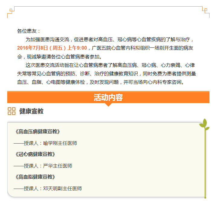 【诚邀】健康咨询、免费体检样样有,广医五院心血管病友会欢迎您!