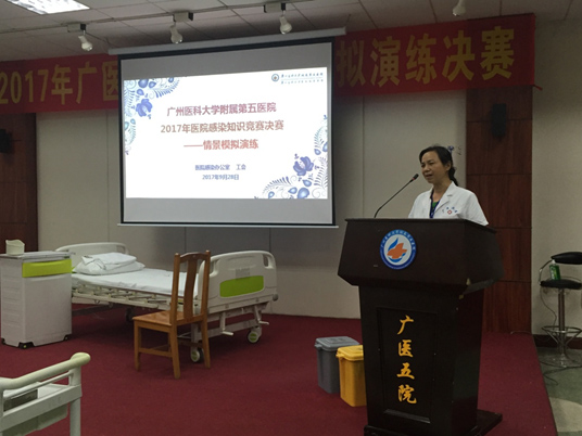 从2017年9月26日开始,我院开展了为期一月的广医五院感染控制宣传月活动,本次宣传月的主题是“感控路上 你我同行”,系列活动内容包括首届感染情影模似演练、手卫生培训、手卫生宣传海报评比、医院感染知识理论竞赛等。医院党委书记周如健、纪检书记陈益民、医院主管副院长江先汉及近200余名工作人员参加活动,医院感染管理办公室主任骆春华主持了这一系列活动。