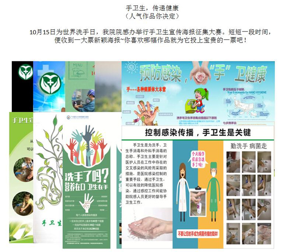 感染控制宣传月系列活动的开展,较好的诠释了此次活动的主题“感控路上 你我同行”。如手卫生规范的培训,现场气氛活跃,融知识性、趣味性于一体,抢答环节妙趣横生。而感染情景模拟演练则体现团队协作控制感染、人文关怀的能力,队员间一答一问、一举一动彰显感控你我同行的魅力,手卫生宣传海报作品人气评比大赛,人气指数爆棚,短短一周时间,微信投票点击率近2万人次。